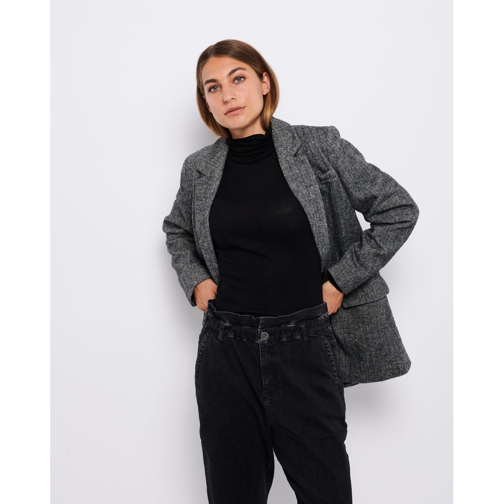 Esther Jeans giver enhver garderobe et cool pift. Designet har flæsedetaljer ved taljen, et loose-fit, som er smallere forneden. Den vasket, rå denimkvalitet er cool og giver ekstra kant til ethvert look. Style med en go-to blazer eller en chunky strik, når vejret er køligere. Modellen er 175 cm høj og bruger størrelse S/M. Bukserne er størrelsessvarende. Ønskes et casual look, hvor bukserne skal være på hoften, bør du gå en størrelse op.