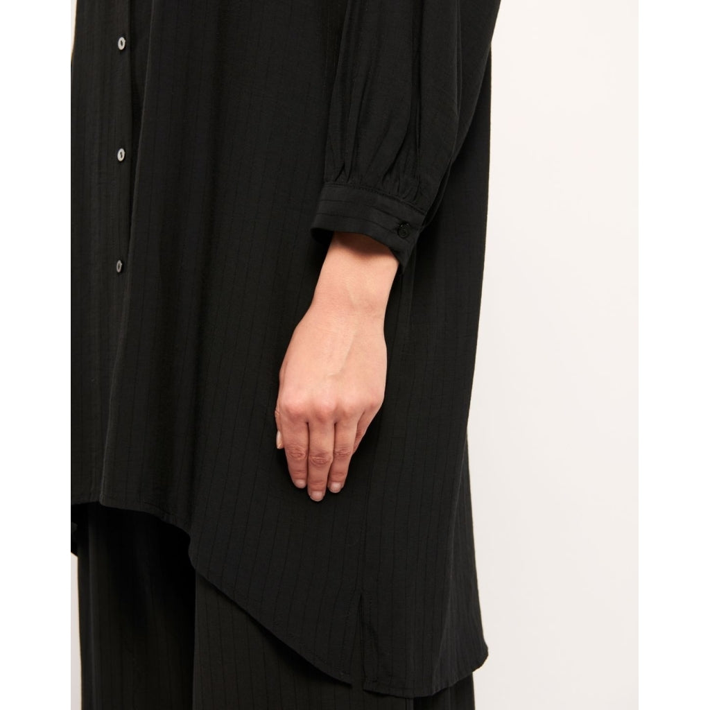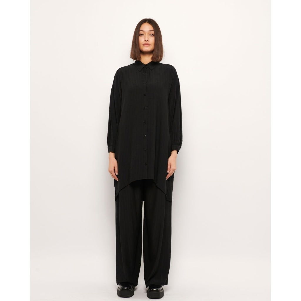 Inge Shirt Dress er en elegant og lang skjortekjole i den blødeste viscose kvalitet. Skjortekjolen har "usynlige" striber, en stilfuld krave samt knappelukning på ærmeåbning. Skjortekjolen er perfekt til både hverdag og finere anledninger og passer perfekt sammen med Susanne Pants, som er lavet i samme Design. Sættet giver et loose fit på en stilfuld måde.