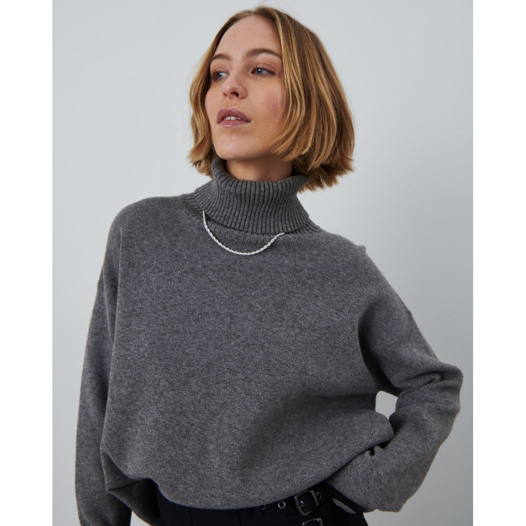Isabella Knit er en alsidig og elskværdig helårsstrik, som uden tvivl bliver din nye favorit i garderoben. Designet er enkelt, men med en tilpas oversized pasform, voluminøse ærmer og høj hals. Strikken er lavet i det blødeste materialemiks uden uld, hvilket flere foretrækker. Modellen er 176 cm høj og bruger størrelse S/M.