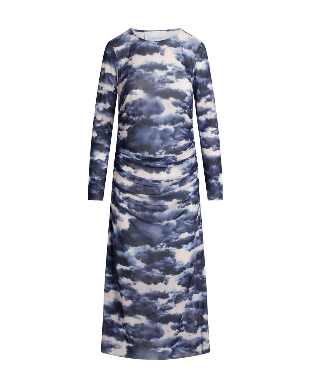 Isabella Mesh Dress er en must-have kjole til foråret, som med draperinger langs siden giver en flatterende silhouette - også til den kurvede kvindekrop. Kjolen har lange ærmer, rund halsudskæring og indsyet underkjole. Brug kjolen med sneakers til foråret og fuldend looket med vores Agnete Blazer.