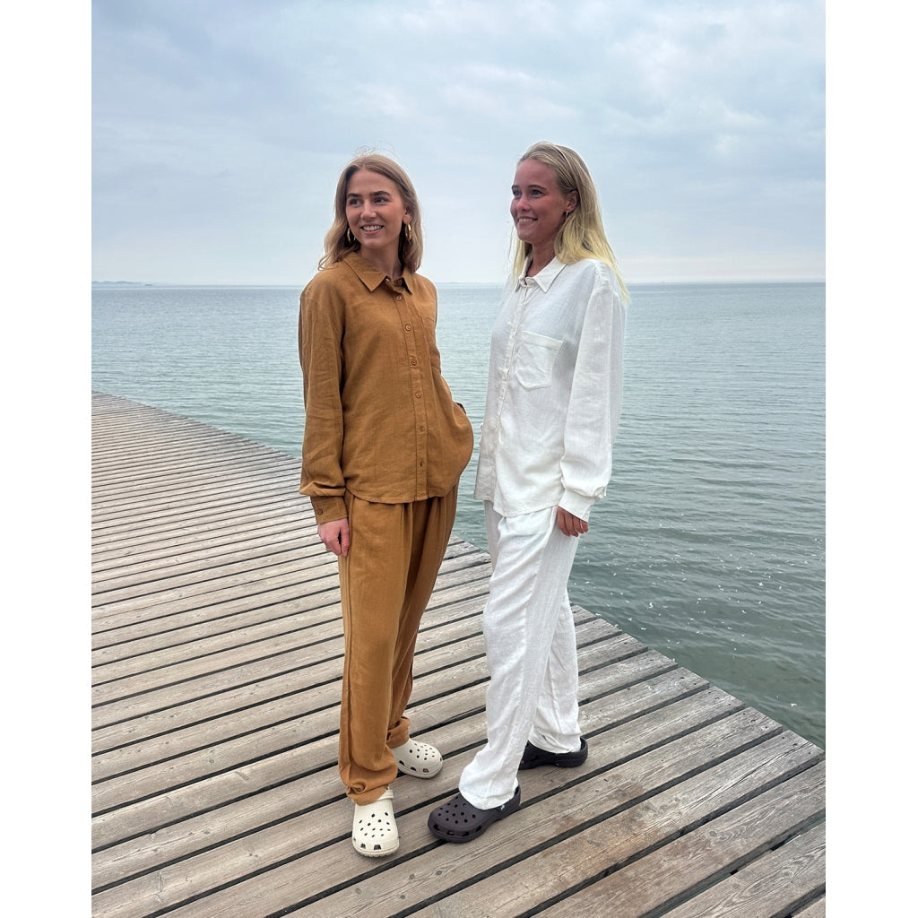 Jannie Shirt er lavet i et luksuriøst hør/bomuldsmix, som har et hør-look, men som samtidig krøller minimalt. Skjorten har et gennemknappet designet med en almen skjortekrave og lange ærmer, som gør den anvendelig hele året rundt. Du kan med fordel style skjorten med vores materialematchende bukser. Ønskes et mere casual look, kan du med fordel style skjorten med enten denimskirt eller denimjeans.