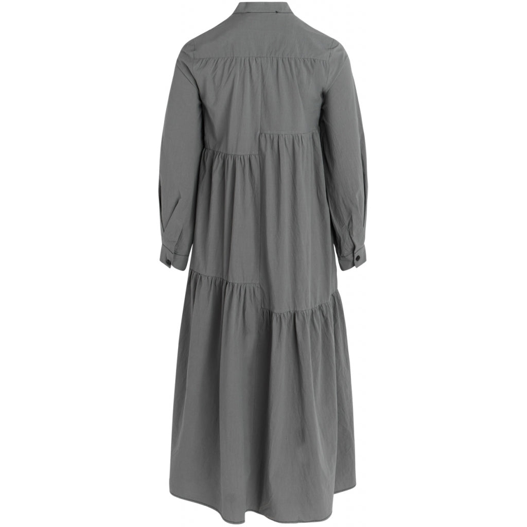 Tippie Dress har en rummelig og uforpligtende pasform, hvor der er kælet for detaljerne. De asymmetriske, kontrastfulde syninger, den klassiske kinakrave og den ekstravagante maxi-længde, skaber et cool udtryk. Kjolen kan med fordel styles med grove støvler, men kan også sagtens anvendes med stiletter til festlige lejligheder.